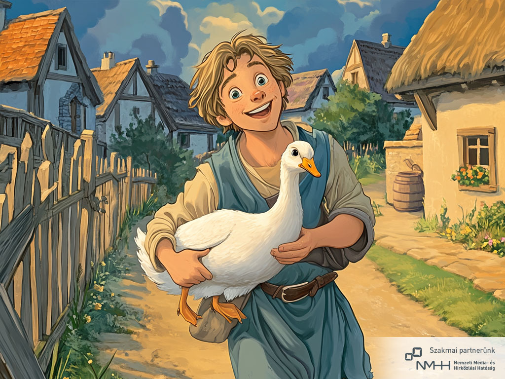 Elmegy az özvegy, Jankó meg támasztja tovább a kapufélfát. Egyszer csak huss! - egy csapat vadliba beszállott az udvarába. Nagyon megörült Jankó, szaladt a szomszédasszonyához.