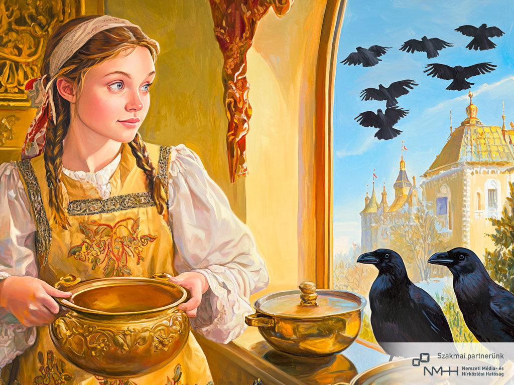 - Ez a mi húgocskánk! - károgott egyszerre a tizenkét varjú, s összecsattogtatták a szárnyukat nagy erős örömükben.