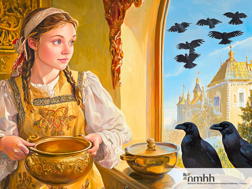 - Ez a mi húgocskánk! - károgott egyszerre a tizenkét varjú, s összecsattogtatták a szárnyukat nagy erős örömükben.